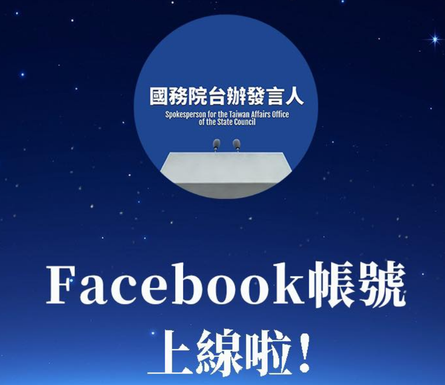 根據中國國台辦發言人朱鳳蓮於(22)日例行記者會的說法,該機構為「加強對台新聞發布工作」,特別在Facebook平台上設立《國務院台辦發言人》帳號,並於10月21日首度發文。該貼文內容簡短,僅一句「Facebook帳號上線啦!」並附上QR code邀請掃描追蹤。至截稿前,該粉專僅有164名追蹤者,但已掀起網路熱議。